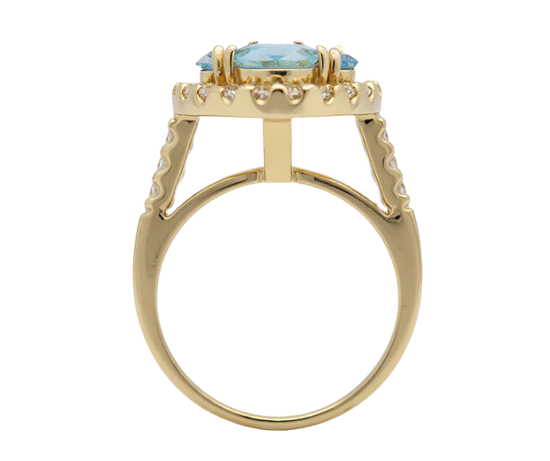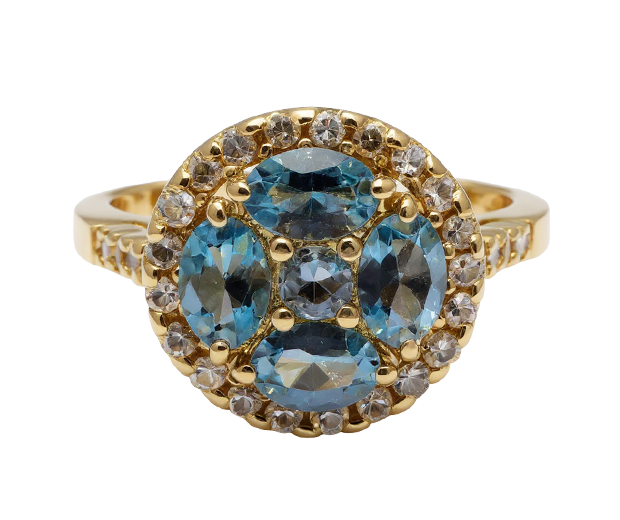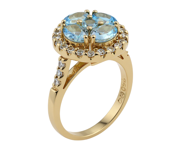 18KT GOLD RING SET WITH 04 AQUAMARINES AND 27 WHITE SAPPHIRES