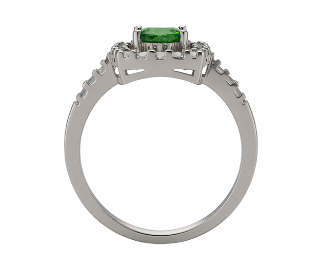 18KT WHITE GOLD RING SET WITH 01 DIOPSIDE AND 24 WHITE SAPPHIRES
