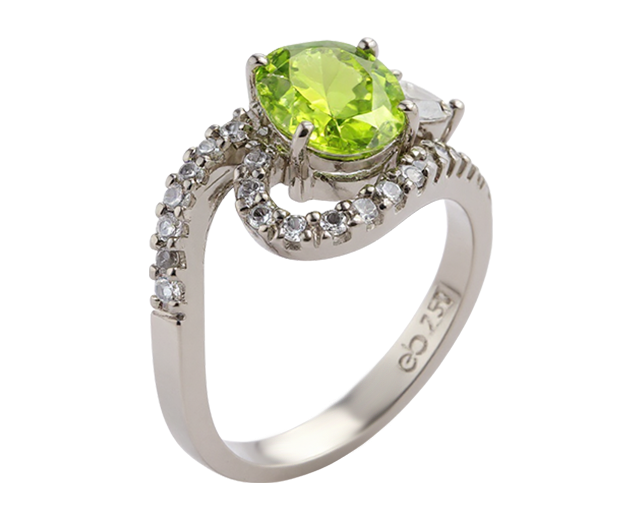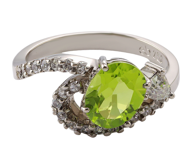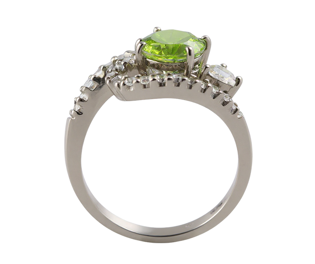 18KT WHITE GOLD RING SET WITH 01 PERIDOT AND 21 WHITE SAPPHIRES
