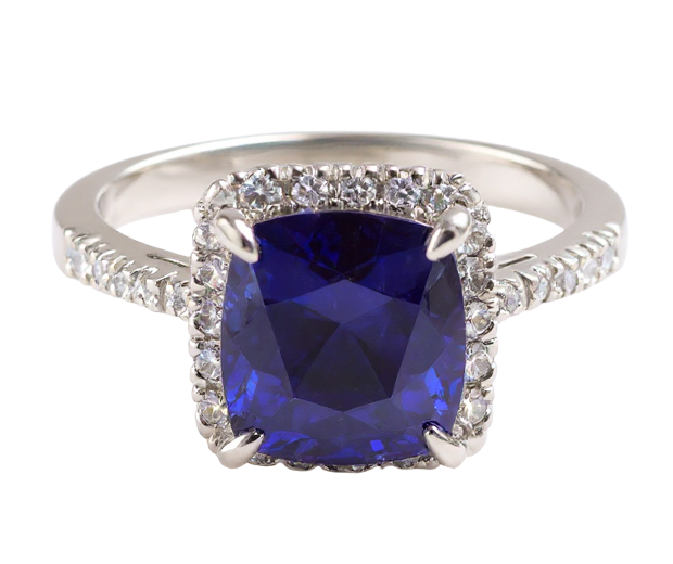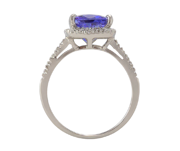 18KT WHITE GOLD RING SET WITH 01 BLUE SAPPHIRE AND 30 DIAMONDS