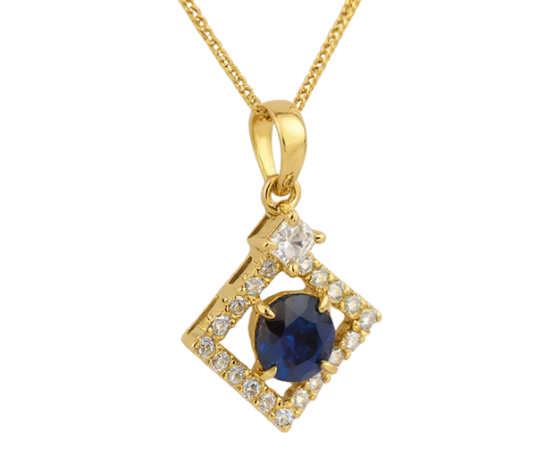 18KT GOLD PENDANT SET WITH 01 BLUE SAPPHIRE AND 20 WHITE SAPPHIRES