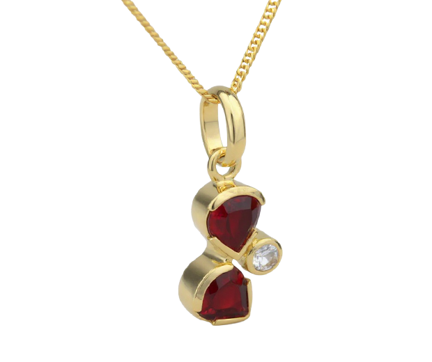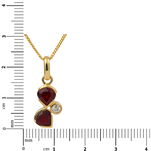18KT GOLD PENDANT SET WITH 02 GARNETS AND 01 WHITE SAPPHIRE