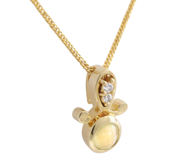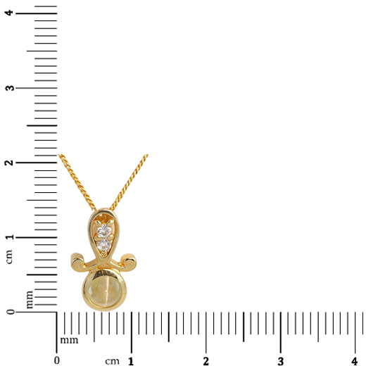 18KT GOLD PENDANT SET WITH 01 CHRYSOBERYL CATS EYE AND 02 DIAMONDS