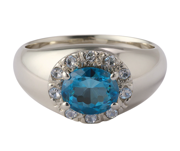 • Item Details: Crafted in Silver (925), this ring is made in Ring Size 54 and features a tapered band measuring 4.00–8.50 mm. The design is highlighted by one oval mixed-cut Blue Topaz measuring 7.50×6.50 mm, set in prongs to enhance its brilliance. Ten round mixed-cut White Sapphires measuring 2.00 mm are pavé set as supporting stones, adding a refined shimmer. A stylish and eye-catching piece with a balanced and elegant look.