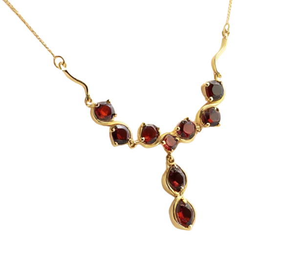 18KT GOLD NECKLACE SET WITH 09 GARNETS