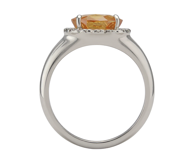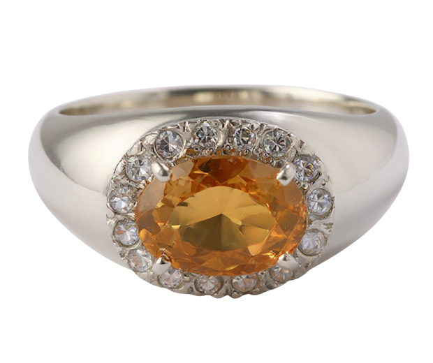 • Item Details: Crafted in Silver (925), this ring is made in Ring Size 63.5 and features a tapered band measuring 3.75–9.50 mm. It is centered with one oval mixed-cut Citrine measuring 10.50×7.50 mm, held in a prong setting to highlight its warm tone. Fifteen round brilliant-cut White Sapphires measuring 2.00 mm are pavé set as supporting stones, creating a balanced sparkle