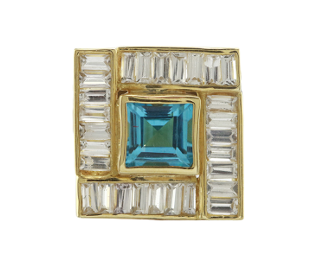 18KT GOLD CUFFLINK PAIR SET WITH 02 BLUE TOPAZES AND 56 WHITE SAPPHIRES