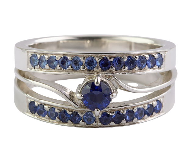 STERLING SILVER RING SET WITH 25 BLUE SAPPHIRES