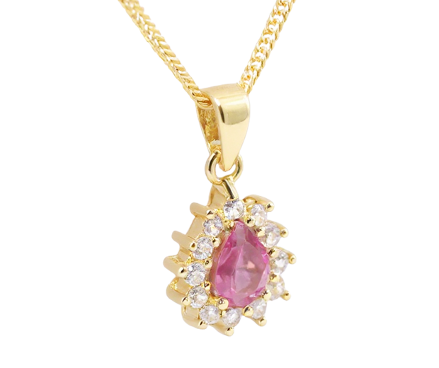 18KT GOLD PENDANT SET WITH 01 RUBY AND 12 WHITE SAPPHIRES