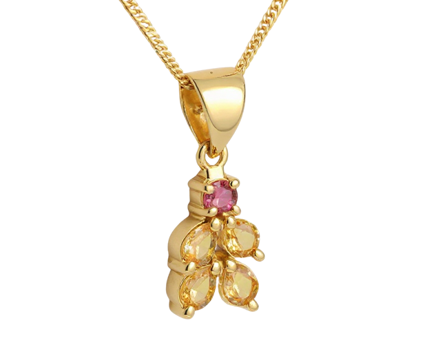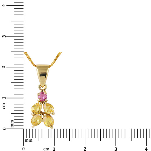 18 KT GOLD PENDANT SET WITH 04 YELLOW SAPPHIRES AND 01 RUBY