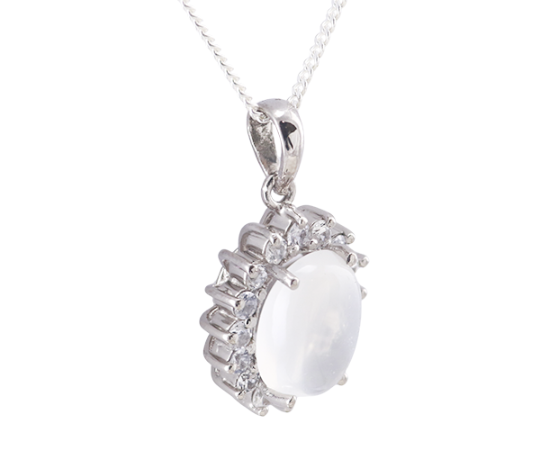 18KT WHITE GOLD PENDANT SET WITH 01 MOONSTONE AND 16 WHITE SAPPHIRES
