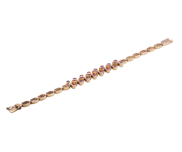 18KT GOLD BRACELET SET WITH 07 YELLOW SAPPHIRES AND 16 RUBIES
