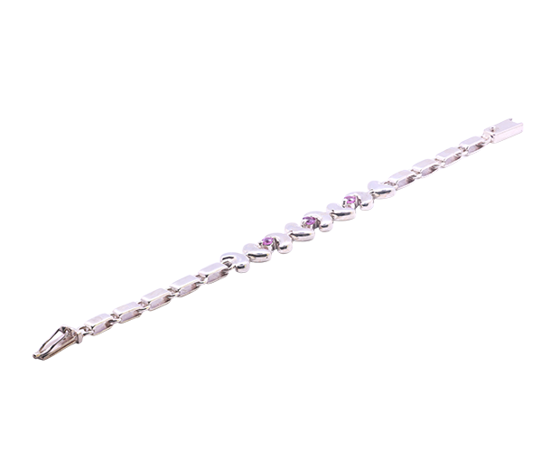 STERLING SILVER BRACELET SET WITH 3 PINK SAPPHIRES