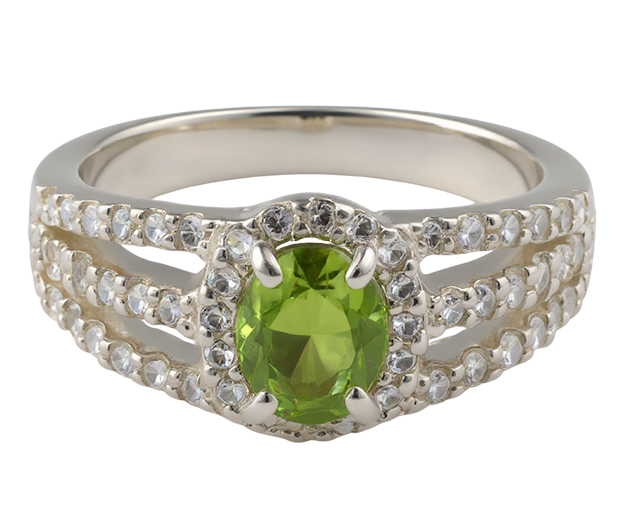 STERLING SILVER RING SET WITH 01 PERIDOT AND 54 WHITE SAPPHIRES