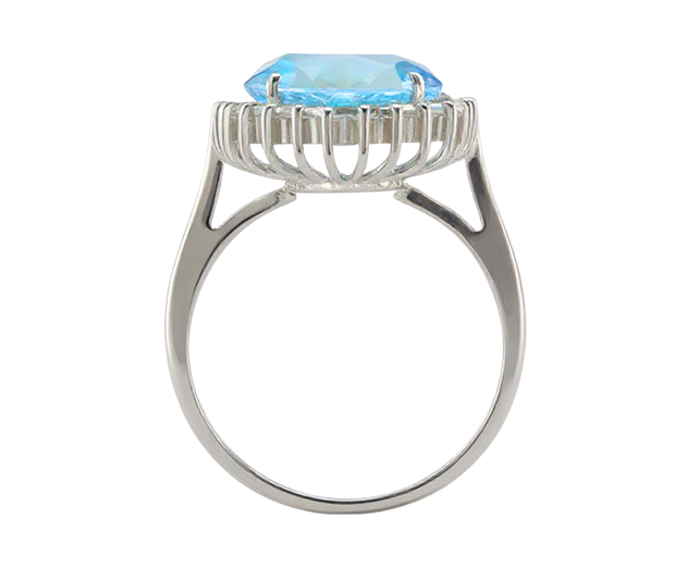 STERLING SILVER RING SET WITH 01 TOPAZ AND 24 WHITE SAPPHIRES