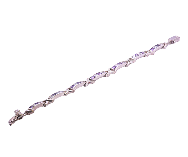 STERLING SILVER BRACELET SET WITH 14 AMETHYSTS AND 20 WHITE SAPPHIRES