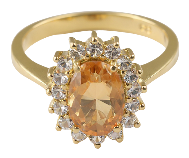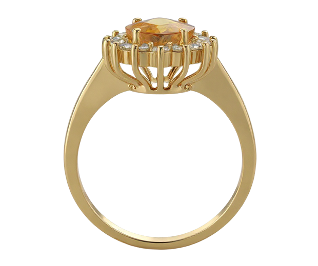 18KT GOLD RING SET WITH 01 CITRINE AND 16 WHITE SAPPHIRES