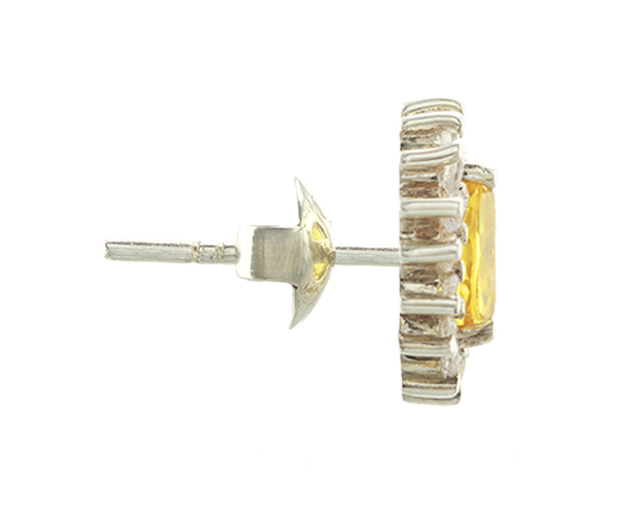 STERLING SILVER EARRING PAIR SET WITH 02 YELLOW SAPPHIRES AND 32 WHITE SAPPHIRES