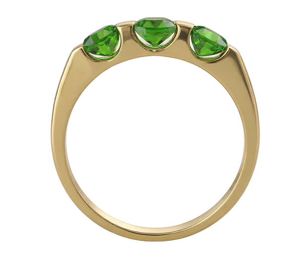 18KT GOLD RING SET WITH 03 CHROME DIOPSIDES AND 06 WHITE SAPPHIRES