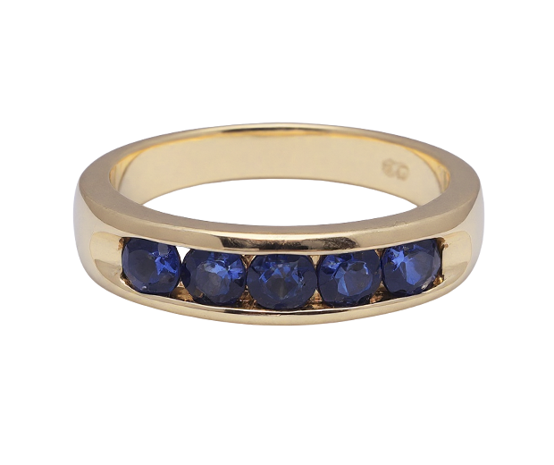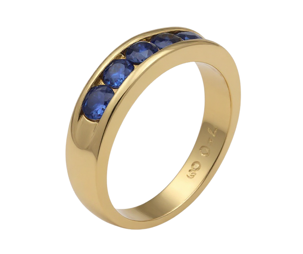 18KT GOLD RING SET WITH 05 BLUE SAPPHIRES
