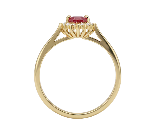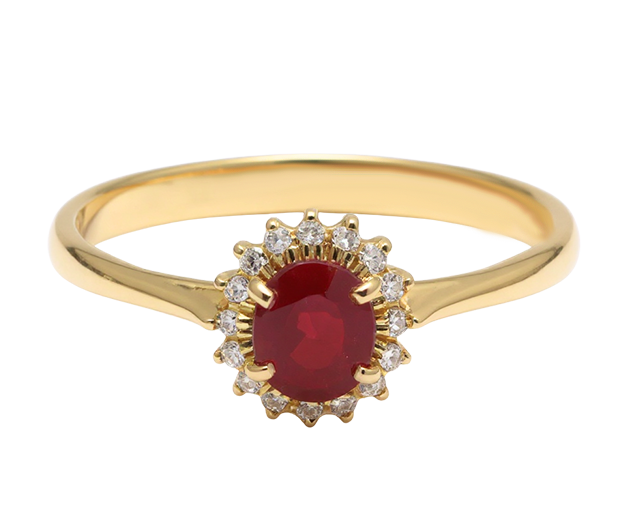 18KT GOLD RING SET WITH 16 DIAMONDS AND 01 RUBY