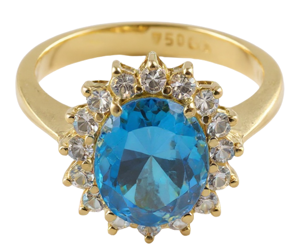18KT GOLD RING SET WITH 01 BLUE TOPAZ AND 16 WHITE SAPPHIRES