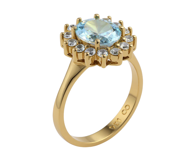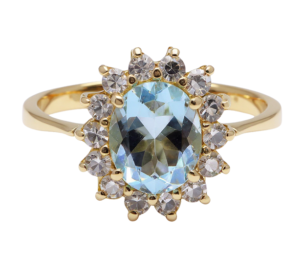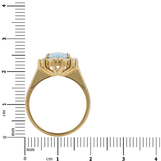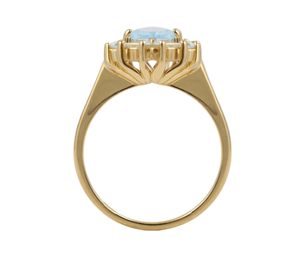 18KT GOLD RING SET WITH 01 AQUAMARINE AND 14 WHITE SAPPHIRES