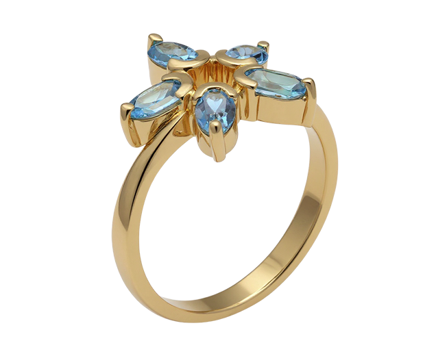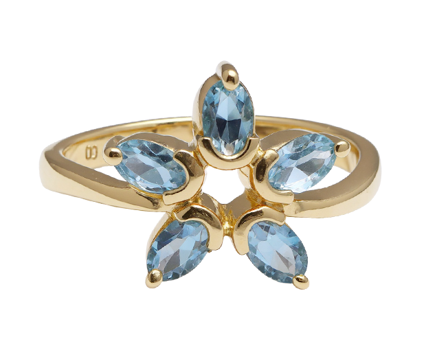 18KT GOLD RING SET WITH 05 AQUAMARINES