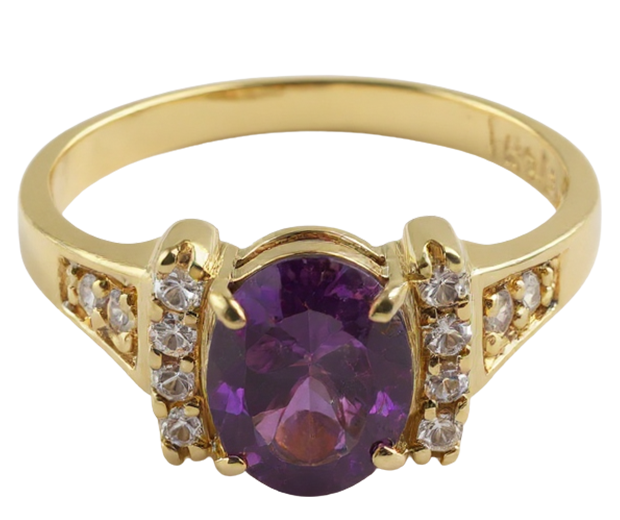 18KT GOLD RING SET WITH 01 AMETHYST AND 12 WHITE SAPPHIRES